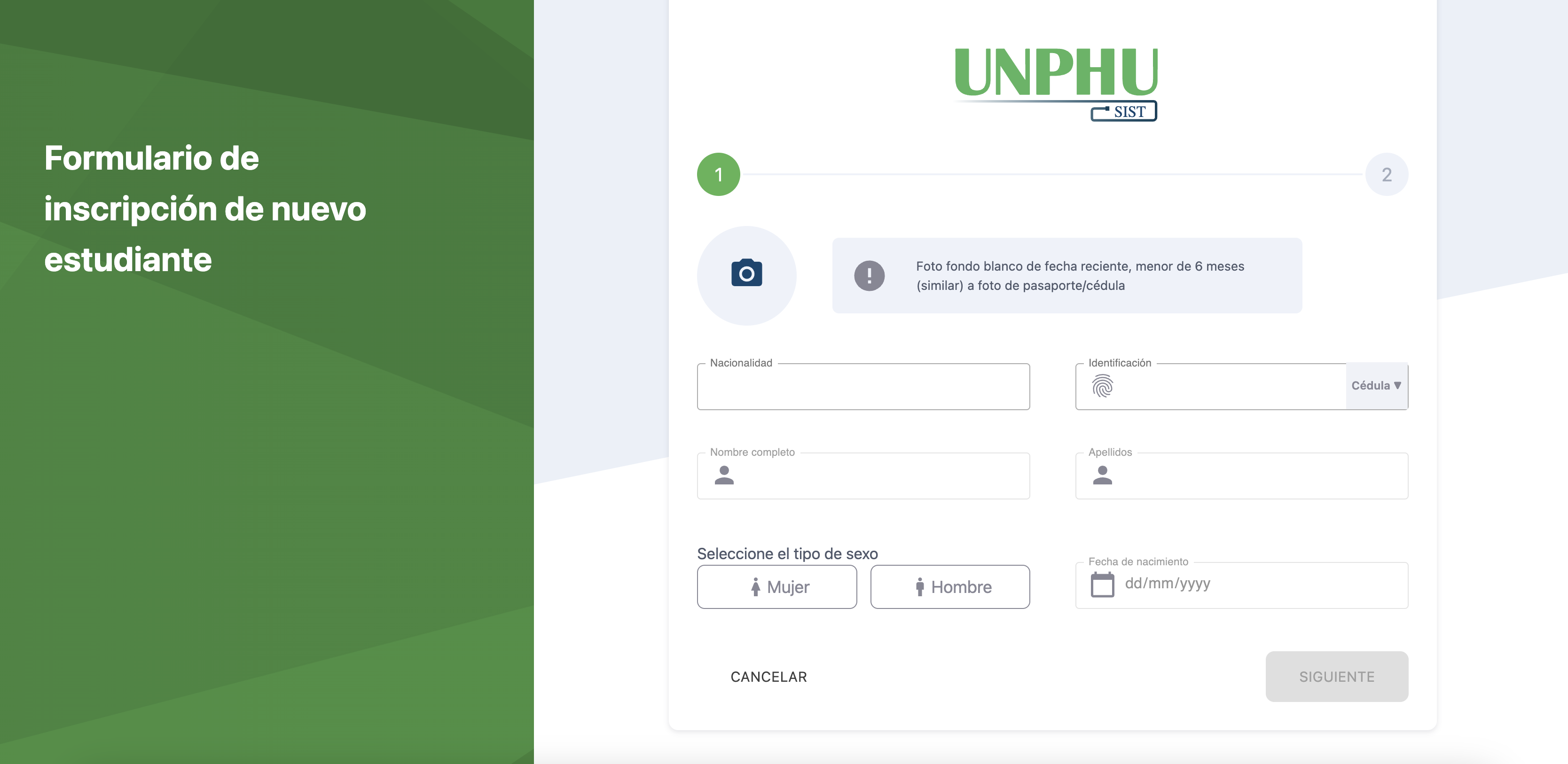 Foto: En el caso de que el sistema obtenga información de la JCE, se utilizará la foto almacenada en la base de datos de la JCE. De lo contrario, el usuario podrá subir una foto manualmente.
