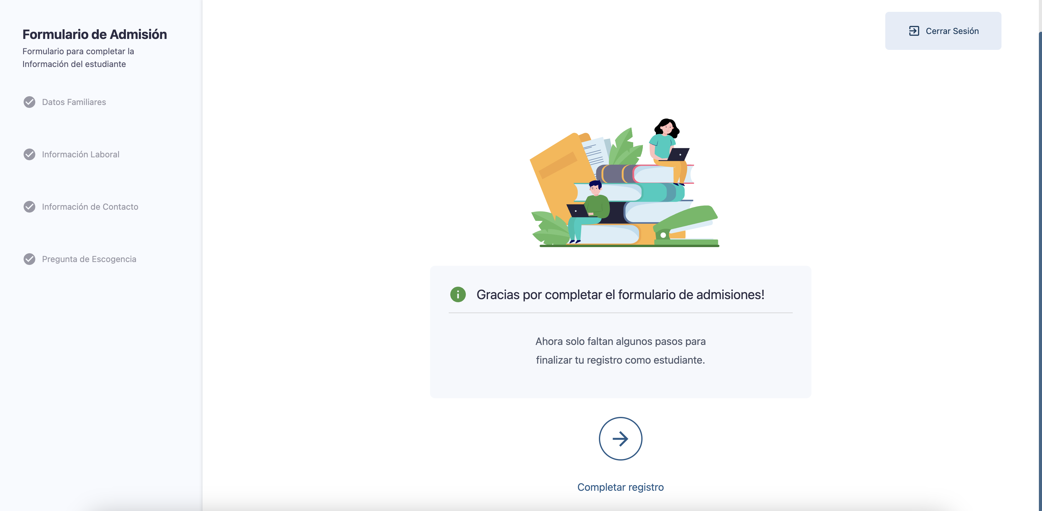 - Confirmar: Envía el formulario una vez que el estudiante ha completado toda la información requerida.